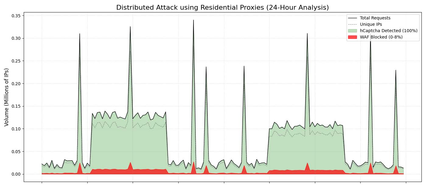 For example, a recent scaled attack on an hCaptcha customer used nearly 9 million IPs within 24 hours, but made only one or two requests per IP.